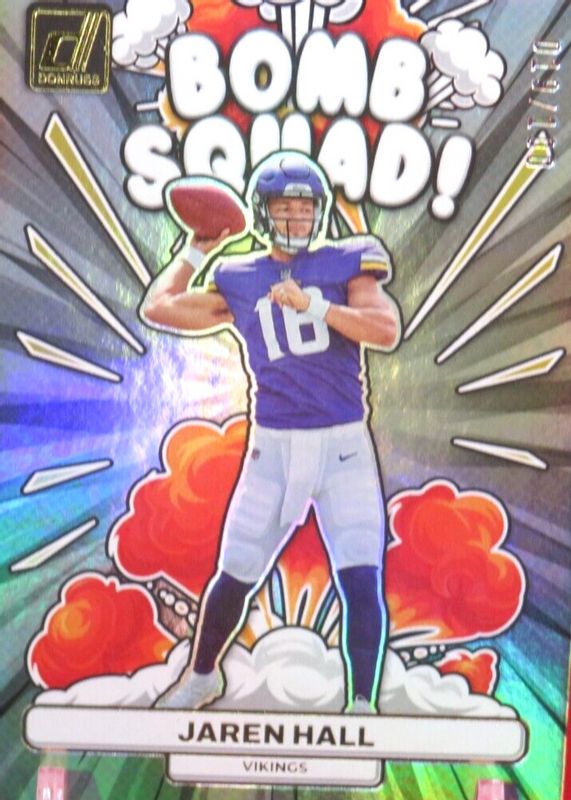 2023 Panini Donruss Jaren Hall Bomb Squad HOLO 78/100 Case Hit Rookie Vikings