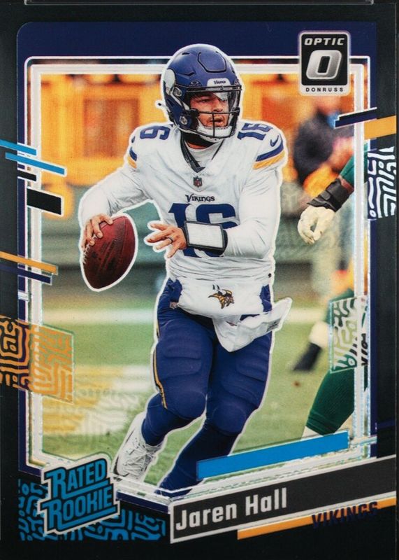 The Jaren Hall 2023 Optic #270 Black /1 Rookie card in Raw condition has not changed in price in the last 30 days and was last sold for $112.50 .