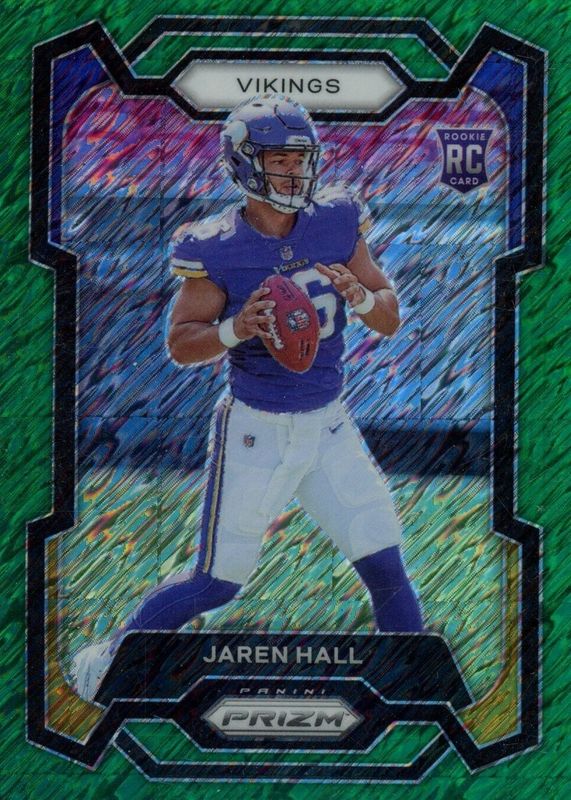 The Jaren Hall 2023 Prizm #367 Green Shimmer /5 Rookie card in Raw condition has not changed in price in the last 30 days and was last sold for $51.00 .