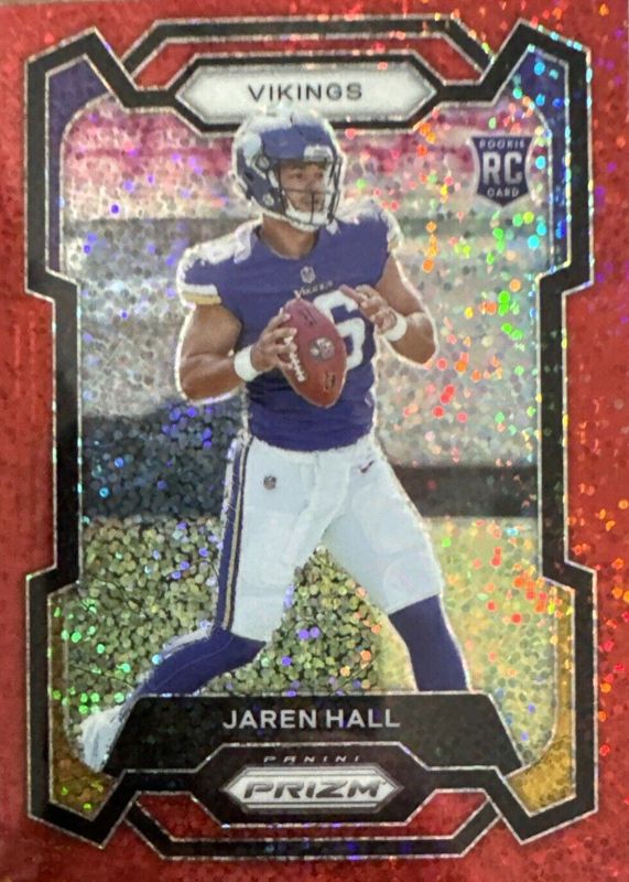 JAREN HALL 2023 PANINI PRIZM ROOKIE RED SPARKLE VIKINGS SSP #367 RC Q2513