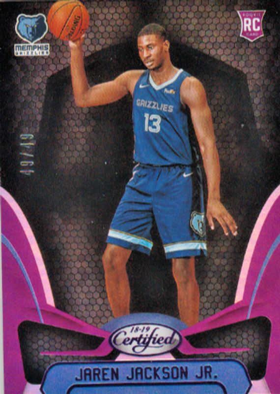 The Jaren Jackson Jr. 2018 Certified #154 Mirror Purple /49 Rookie card in Raw condition has not changed in price in the last 30 days and was last sold for $20.50 .