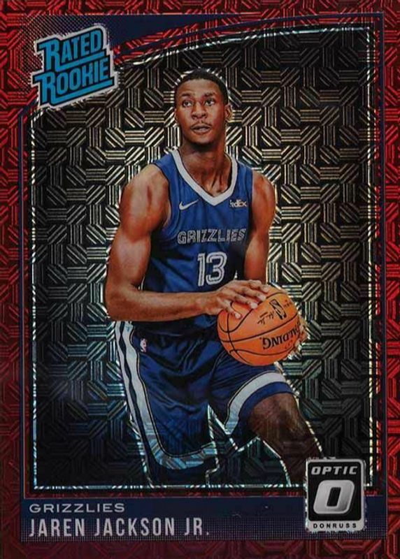 The Jaren Jackson Jr. 2018 Optic #188 Choice Red /88 Rookie card in Raw condition has not changed in price in the last 30 days and was last sold for $4.25 .