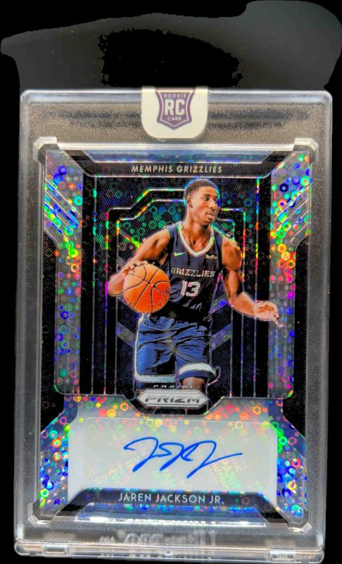 The Jaren Jackson Jr. 2018 Prizm #FR-JJJ Fastbreak Autographs Rookies card is 1 of 69 Jaren Jackson Jr.'s card variations in the 2018 Prizm set being tracked by Sports Card Investor, including Base, Choice Blue Yellow Green, Fast Break, Green, and Hyper.
