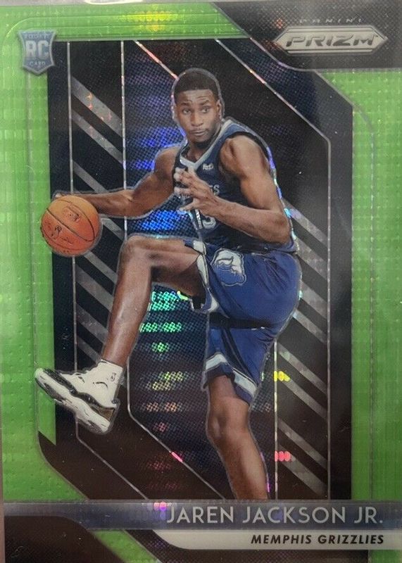 The Jaren Jackson Jr. 2018 Prizm #66 Green Pulsar /25 Rookie card in Raw condition has not changed in price in the last 30 days and was last sold for $177.50 .