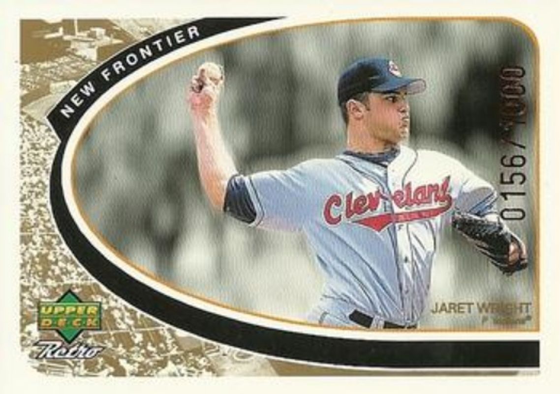 The Jaret Wright 1998 Upper Deck Retro #NF10 New Frontier /1000 card is 1 of 2 Jaret Wright's card variations in the 1998 Upper Deck Retro set being tracked by Sports Card Investor, including Base.