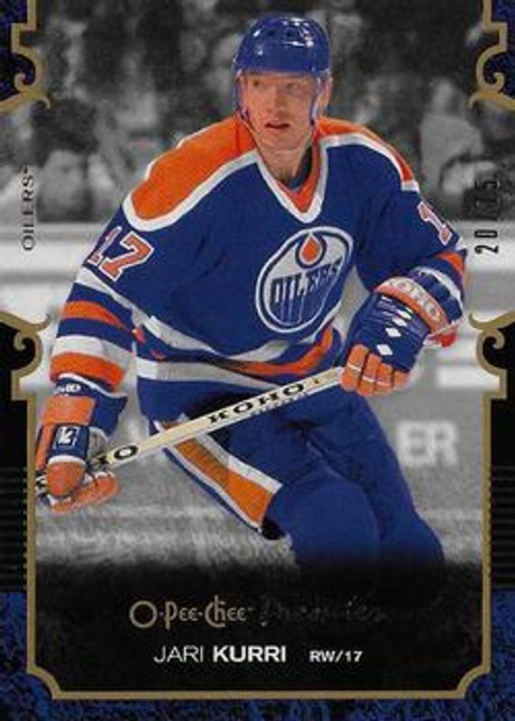 The Jari Kurri 2007 O-Pee-Chee Premier #17 Gold /50 card is 1 of 9 Jari Kurri's card variations in the 2007 O-Pee-Chee Premier set being tracked by Sports Card Investor, including Base /299, Silver Spectrum /35, Gold Spectrum /15, Black /1, and Penmanship /100.