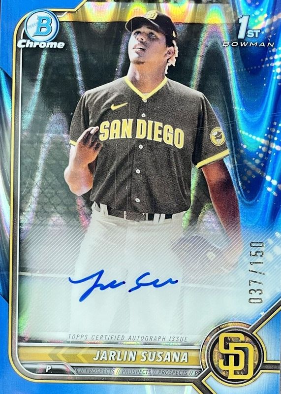2022 Bowman Chrome Jarlin Susana Auto Blue RayWave Refractor /150 Padres 1st