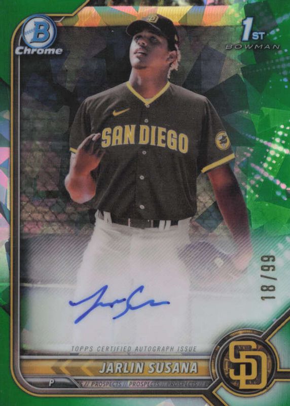 Jarlin Susana 2022 Bowman Chrome #CPA-JSA Prospect Auto - Green Atomic Refractor /99 (1st) RAW Price Guide