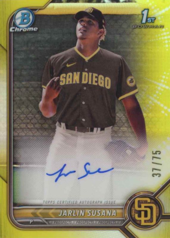 2022 Bowman Chrome Jarlin Susana Auto Yellow Refractor 1st Prospect #7/75 Padres