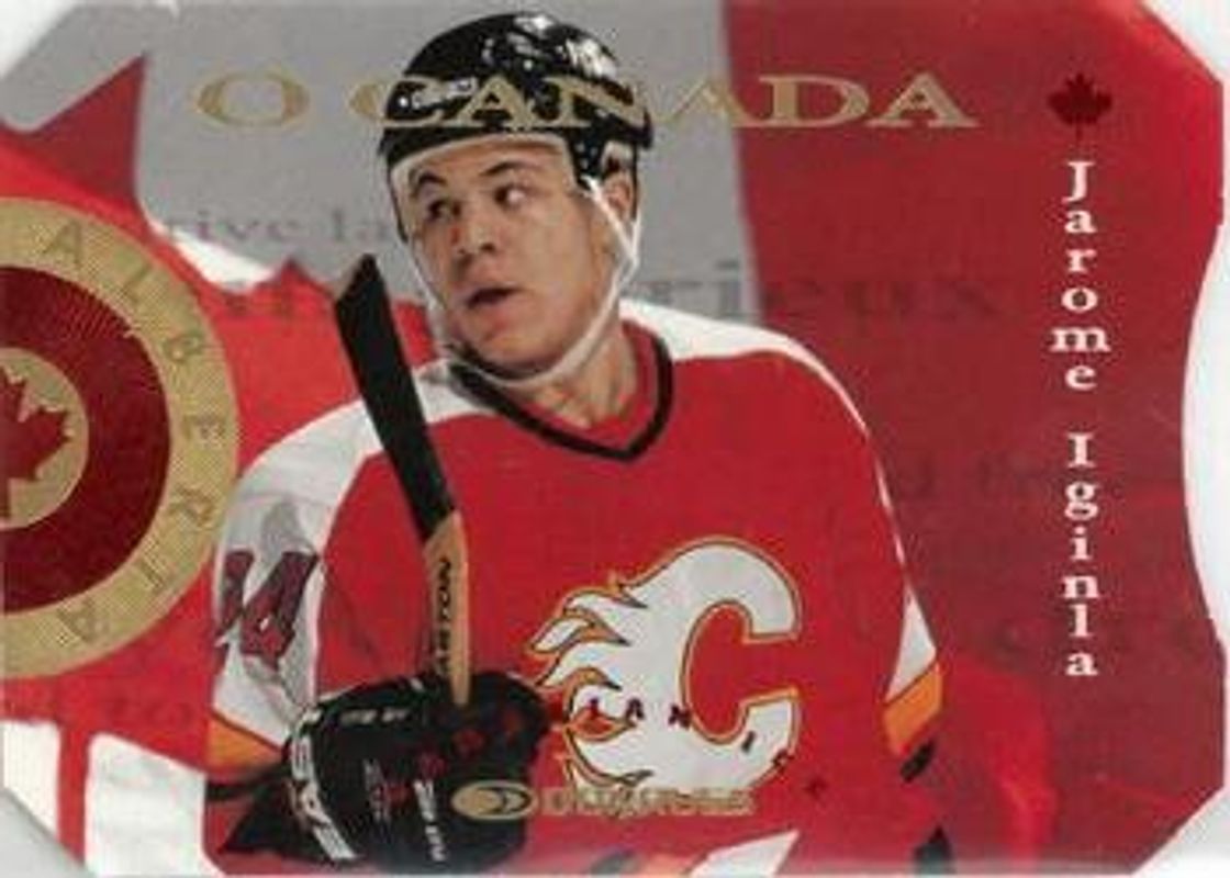 The Jarome Iginla 1996 Donruss Canadian Ice #4 O Canada /2000 card is 1 of 4 Jarome Iginla's card variations in the 1996 Donruss Canadian Ice set being tracked by Sports Card Investor, including Base, Canadian Gold Press Proofs, and Canadian Red Press Proofs /75.