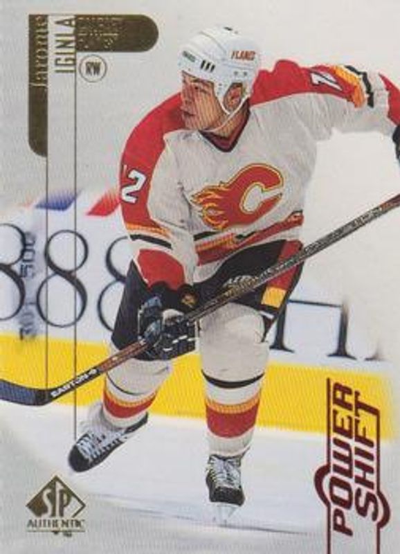The Jarome Iginla 1998 SP Authentic #13 Power Shift /500 card is 1 of 2 Jarome Iginla's card variations in the 1998 SP Authentic set being tracked by Sports Card Investor, including Base /2000.