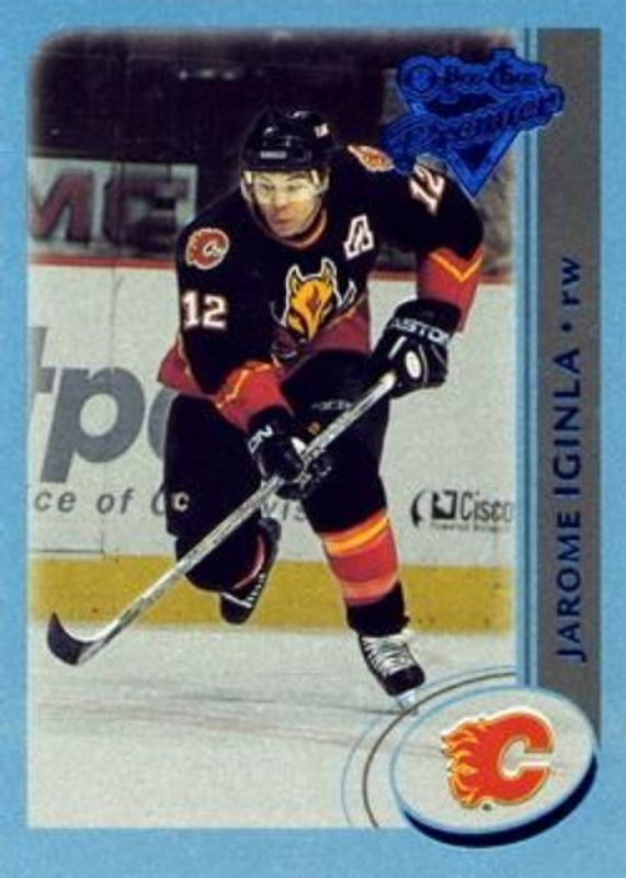 The Jarome Iginla 2002 O-Pee-Chee #12 O-Pee-Chee Premier Blue Line /500 card is 1 of 14 Jarome Iginla's card variations in the 2002 O-Pee-Chee set being tracked by Sports Card Investor, including #328 Base, #12 Base, #328 Factory Set, #12 Factory Set, and #HHC1 Factory Set Hometown Heroes Canada.