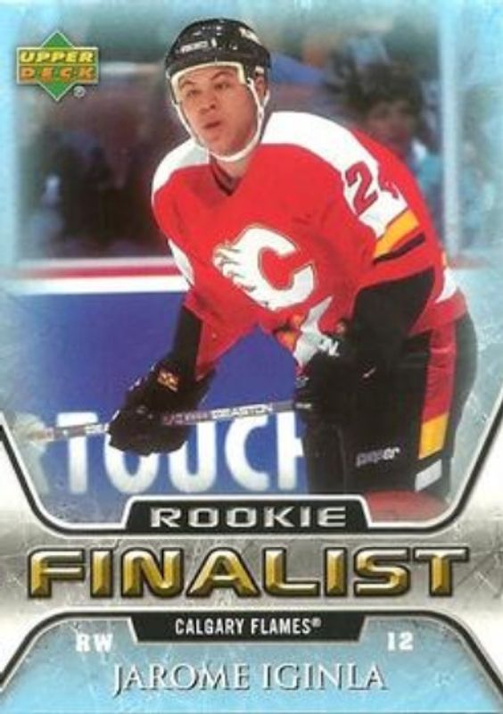 The Jarome Iginla 2005 Fleer Ultra #65 2005 Upper Deck NHL All Time Greatest Finalist card is 1 of 18 Jarome Iginla's card variations in the 2005 Fleer Ultra set being tracked by Sports Card Investor, including Base, Gold Medallion, Promos, Ice Medallion /25, and 2005 Upper Deck NHL All Time Greatest Finalist.