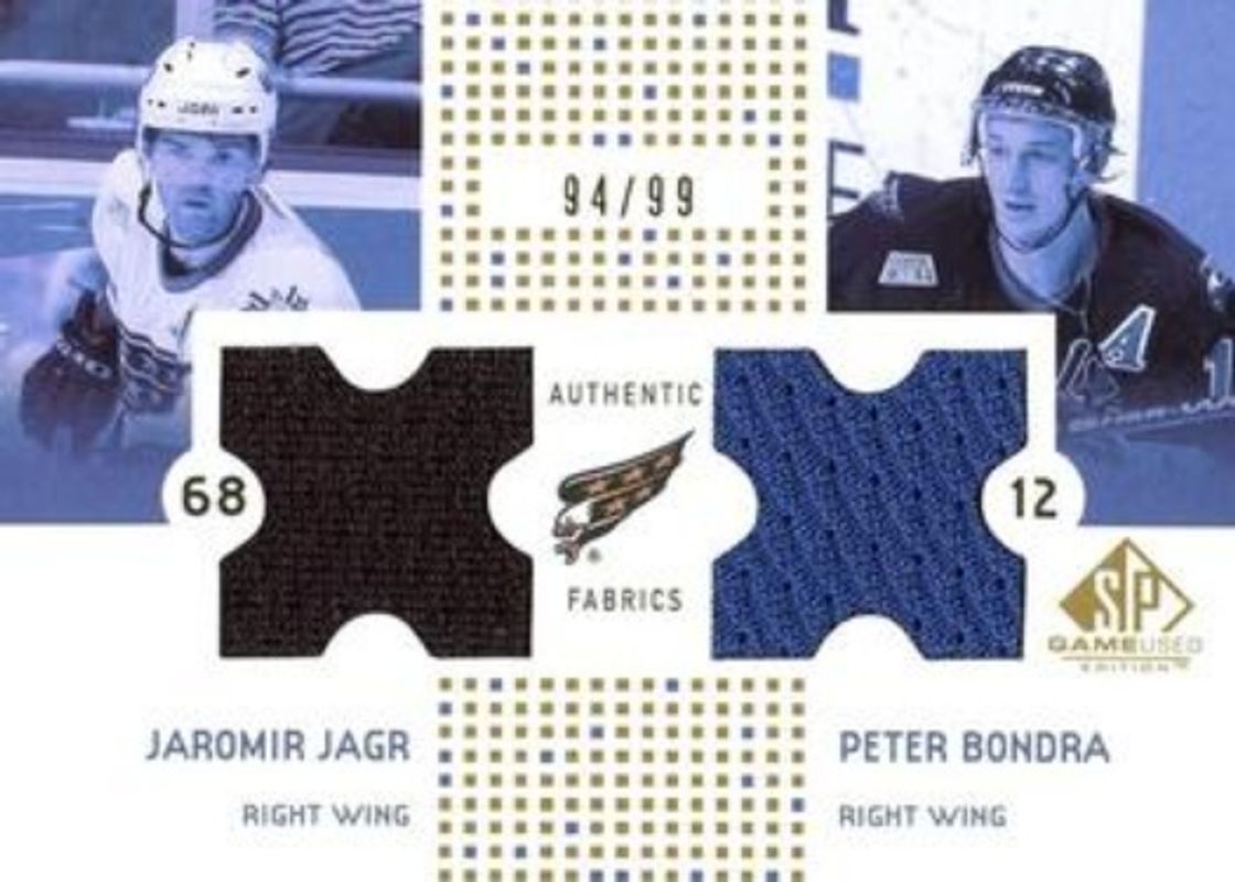 Jaromir Jagr / Peter Bondra 2002 SP Game Used #CF-JB Authentic Fabrics Gold /99 RAW