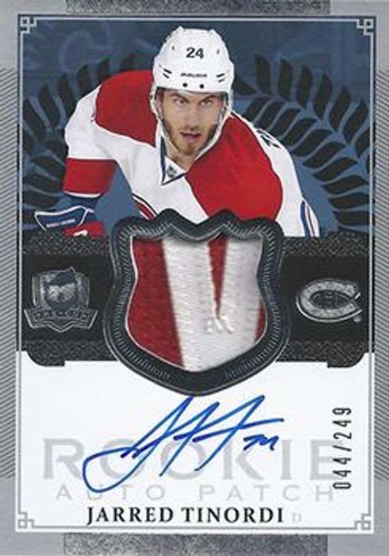 The Jarred Tinordi 2013 Upper Deck The Cup #179 Base /249 Rookie card is 1 of 56 Jarred Tinordi's card variations in the 2013 Upper Deck The Cup set being tracked by Sports Card Investor, including Gold Rookie Autographed Patch /58, Gold Rainbow /25, Gold /14, Black Laundry Tags /3, and Black Rookie Auto Tag /3.