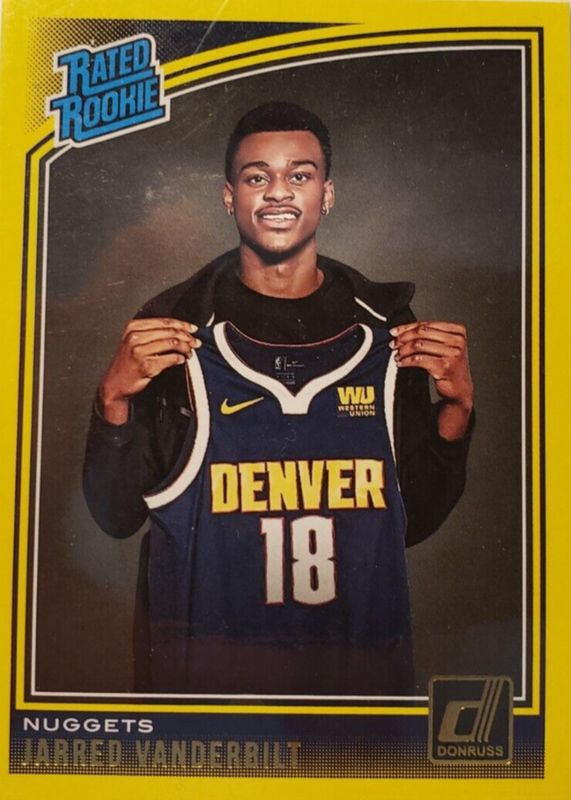 The Jarred Vanderbilt 2018 Donruss #151 Yellow Flood Rookie card in Raw condition has not changed in price in the last 30 days and was last sold for $1.49 .