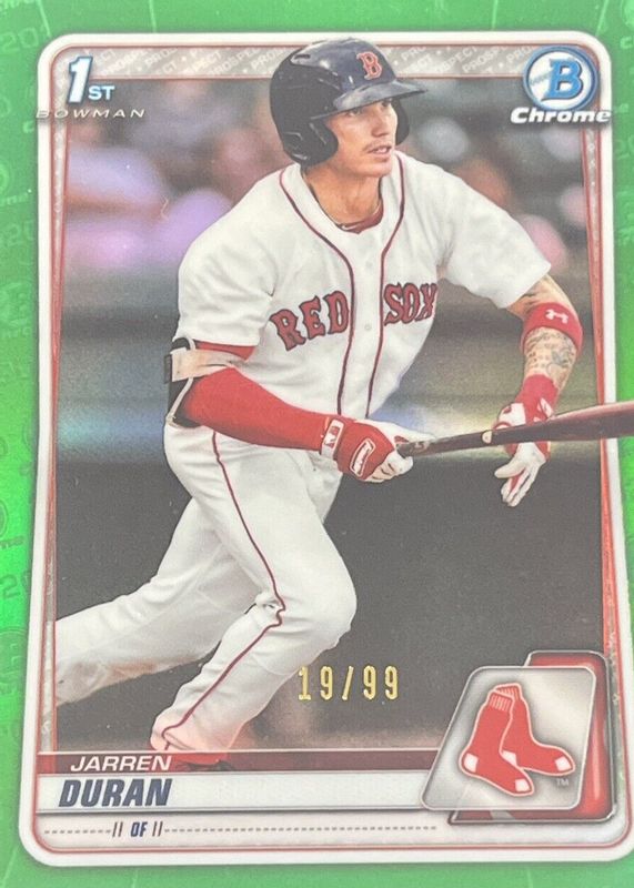 Best Prices Available For Sale of Jarren Duran 2020 Bowman #BCP-144 Chrome Prospects - Green Refractor /99 (1st)