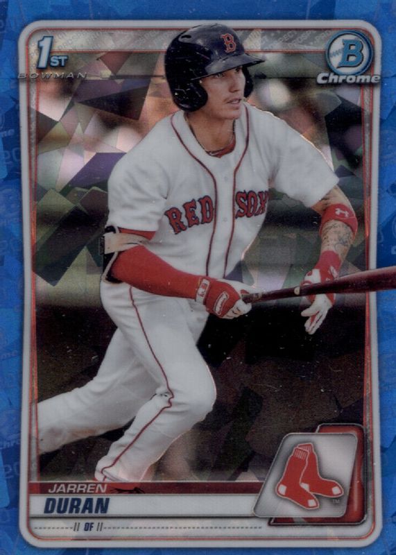 This card is 1 of 11 Jarren Duran's card variations in the 2020 Bowman Sapphire Edition set being tracked by Sports Card Investor, including Chrome Prospects - Orange /75 (1st), Chrome Prospects - Purple /20 (1st), Chrome Prospects - Red /15 (1st), Chrome Prospects - Padparadscha /1 (1st), and Chrome Prospect Auto (1st).