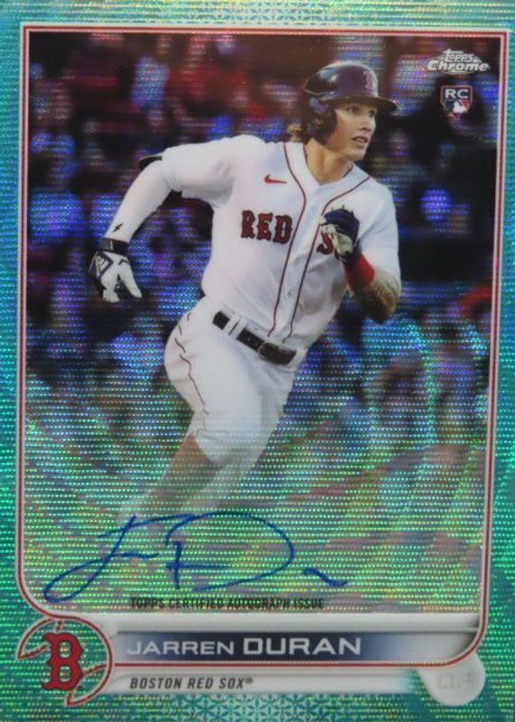 Best Prices Available For Sale of Jarren Duran 2022 Topps Chrome #RA-JD Rookie Auto - Aqua Wave Refractor /199