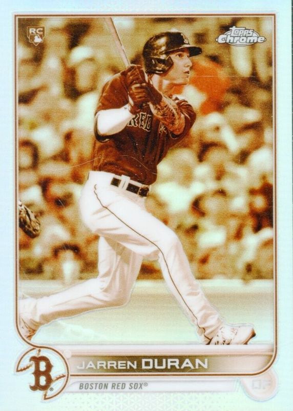 The Jarren Duran 2022 Topps Chrome #113 Sepia Refractor Rookie card in Raw condition has not changed in price in the last 30 days and was last sold for $1.87 .