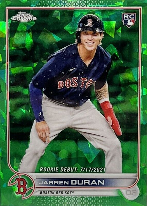 This card is 1 of 8 Jarren Duran's card variations in the 2022 Topps Chrome Update Sapphire Edition set being tracked by Sports Card Investor, including Rookie Debut, Rookie Debut - Gold /50, Rookie Debut - Orange /25, Rookie Debut - Purple /10, and Rookie Debut - Red /5.