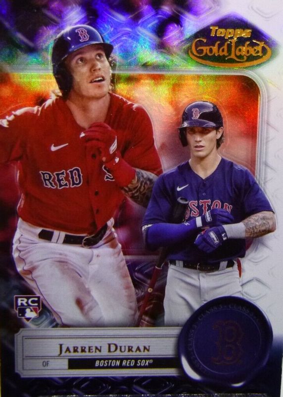 This card is 1 of 15 Jarren Duran's card variations in the 2022 Topps Gold Label set being tracked by Sports Card Investor, including Class 1, Class 1 - Black, Class 1 - Blue /150, Class 1 - Purple /99, and Class 1 - Red /75.