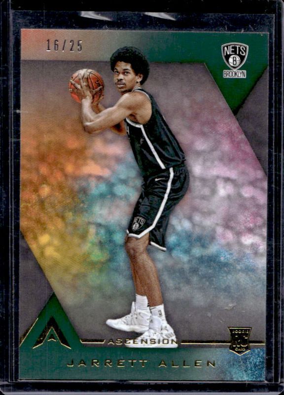 The Jarrett Allen 2017 Ascension #129a Green /25 Rookie card is 1 of 17 Jarrett Allen's card variations in the 2017 Ascension set being tracked by Sports Card Investor, including #129b Base, #129a Base, #129a Blue /125, #129b Blue /125, and #129b Red /75.