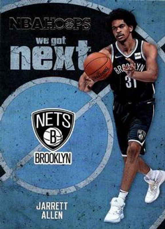 The Jarrett Allen 2017 Hoops #22 We Got Next Rookie card is 1 of 29 Jarrett Allen's card variations in the 2017 Hoops set being tracked by Sports Card Investor, including Base, Premium Factory Set /199, Blue, Great SIGnificance, and Hot Signatures Rookies.
