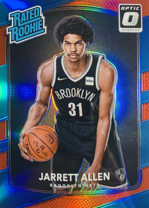 This card is 1 of 61 Jarrett Allen's card variations in the 2017 Optic set being tracked by Sports Card Investor, including Base, Blue Velocity, Checkerboard, Fast Break, and Holo.
