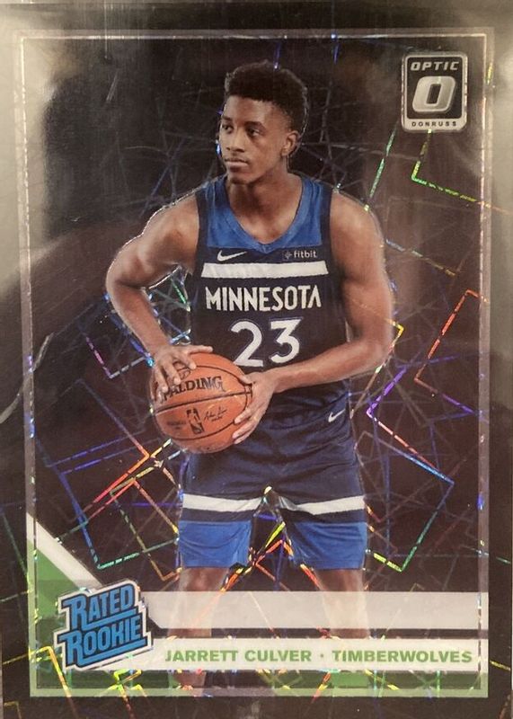 This card is 1 of 36 Jarrett Culver's card variations in the 2019 Optic set being tracked by Sports Card Investor, including Base, Blue Velocity, Checkerboard, Choice, and Choice Red & Green.