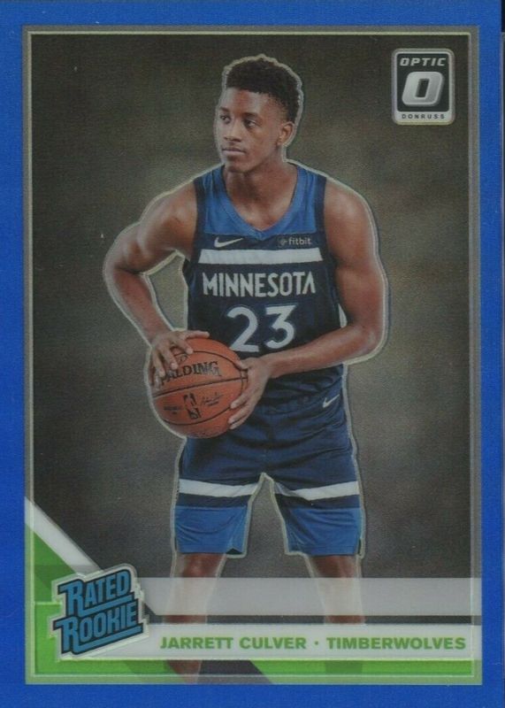 The Jarrett Culver 2019 Optic #160 Blue /59 Rookie card in Raw condition has not changed in price in the last 30 days and was last sold for $5.50 .