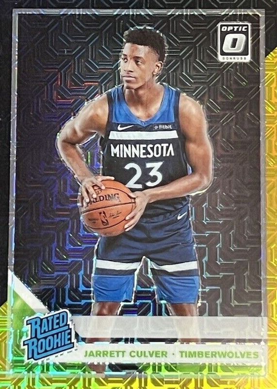 This card is 1 of 36 Jarrett Culver's card variations in the 2019 Optic set being tracked by Sports Card Investor, including Base, Blue Velocity, Checkerboard, Choice, and Choice Red & Green.