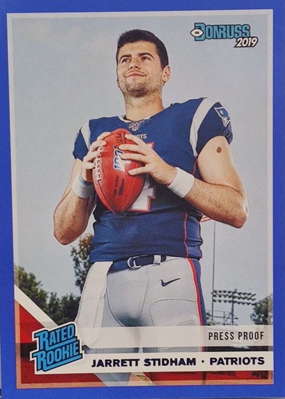 2019 Panini Donruss JARRETT STIDHAM #307 Rated Rookie Press Proof Blue PATRIOTS
