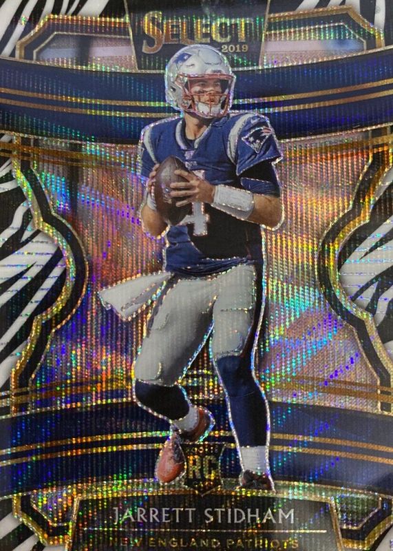 The Jarrett Stidham 2019 Select #75 Concourse Zebra /(SSP) Rookie card in Raw condition has not changed in price in the last 30 days and was last sold for $7.50 .