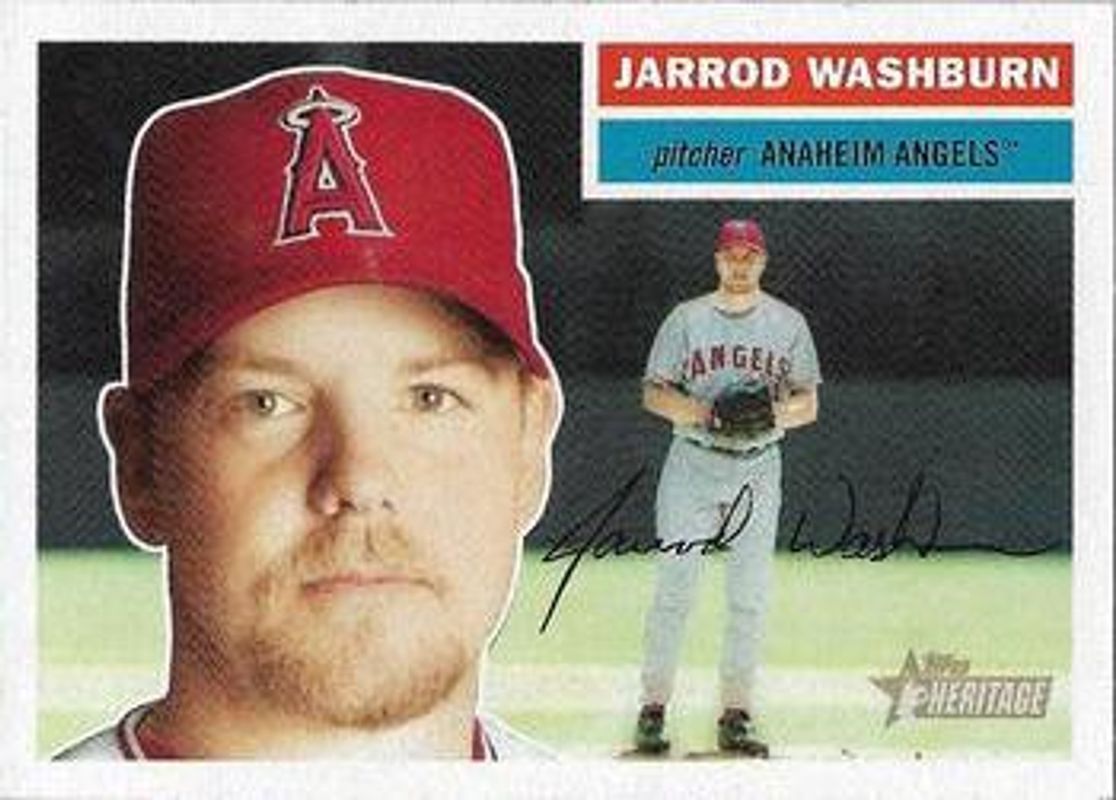 The Jarrod Washburn 2005 Topps Heritage #324b Base card is 1 of 2 Jarrod Washburn's card variations in the 2005 Topps Heritage set being tracked by Sports Card Investor, including Base.