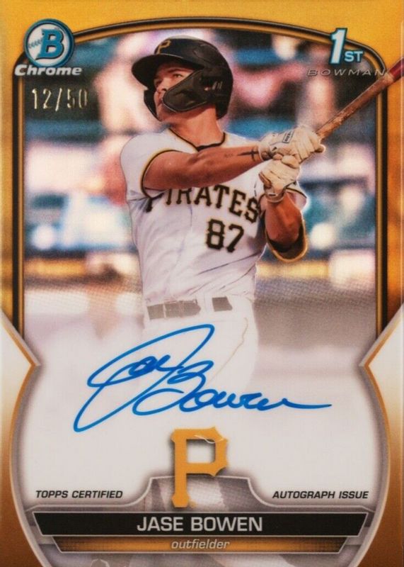 Best Prices Available For Sale of Jase Bowen 2023 Bowman #CPA-JBN Chrome Prospect Auto - Gold Refractor /50 (1st)