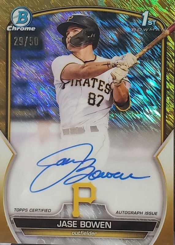 2023 Bowman Chrome 1st JASE BOWEN Pirates GOLD SHIMMER /50 Auto INSCRIPTION!