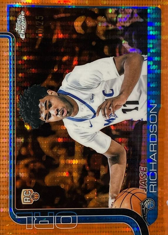The Jase Richardson 2025 Topps Chrome #275 Orange Pulsar Refractor /25 Rookie card in Raw condition has moved up $9.50 (+90.5%) in the last 30 days and was last sold for $20.00 .