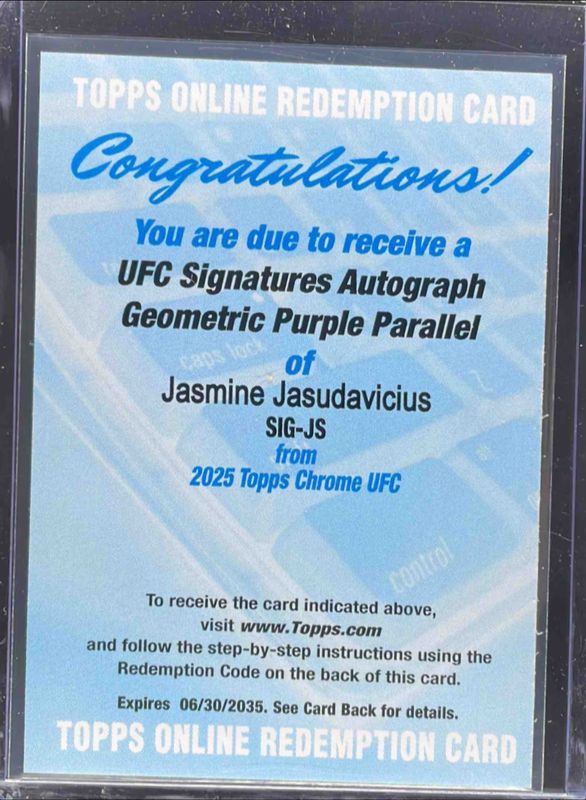 Jasmine Jasudavicius 2025 Topps Chrome UFC #SIG-JS UFC Signatures - Purple Geometric Refractor /10 RAW Price Guide