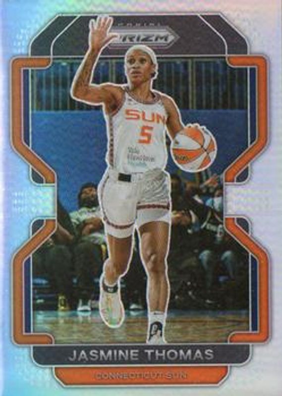 The Jasmine Thomas 2022 Prizm WNBA #27 Silver card is 1 of 19 Jasmine Thomas' card variations in the 2022 Prizm WNBA set being tracked by Sports Card Investor, including Base, Green, Green Ice, Hyper, and Ice.
