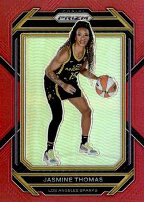 The Jasmine Thomas 2023 Prizm WNBA #3 Red /199 card is 1 of 20 Jasmine Thomas' card variations in the 2023 Prizm WNBA set being tracked by Sports Card Investor, including Base, Blue Wave, Green, Hyper, and Ice.