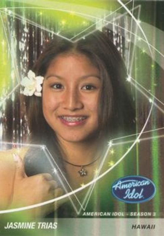 The Jasmine Trias 2004 Fleer American Idol Season 3 #6 Base card is 1 of 9 Jasmine Trias' card variations in the 2004 Fleer American Idol Season 3 set being tracked by Sports Card Investor, including Base, Gold, Platinum, Idol Chatter, and Reality Bits Wardrobe.