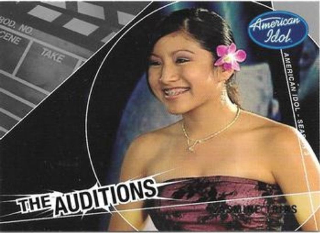 The Jasmine Trias 2004 Fleer American Idol Season 3 #78 Base card is 1 of 9 Jasmine Trias' card variations in the 2004 Fleer American Idol Season 3 set being tracked by Sports Card Investor, including Base, Gold, Platinum, Idol Chatter, and Reality Bits Wardrobe.