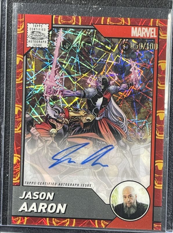 Jason Aaron 2025 Topps Chrome #AA-JA Marvel Comic Book Artist & Writer Autographs - Iron Man Red & Gold Lazer Refractor /100 RAW Price Guide