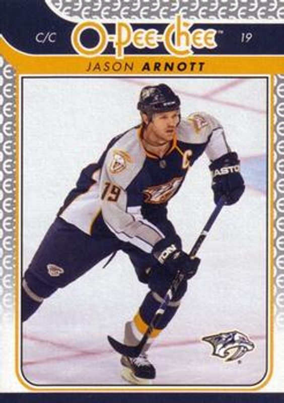 The Jason Arnott 2009 O-Pee-Chee #290 Base card is 1 of 6 Jason Arnott's card variations in the 2009 O-Pee-Chee set being tracked by Sports Card Investor, including Rainbow, Retro, Retro Blank Back, Retro Rainbow /100, and Team Checklists.