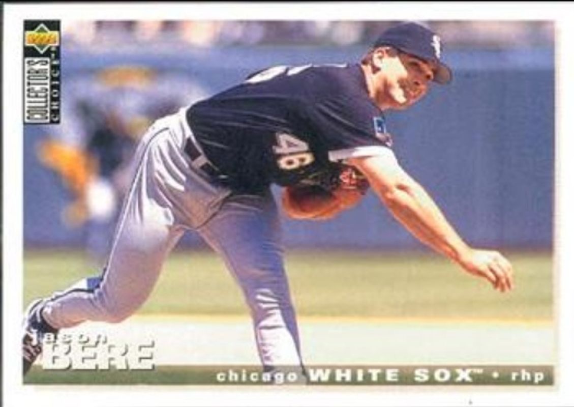 The Jason Bere 1995 Upper Deck Collector's Choice #504 Base card is 1 of 3 Jason Bere's card variations in the 1995 Upper Deck Collector's Choice set being tracked by Sports Card Investor, including Gold Signatures, and Silver Signatures.
