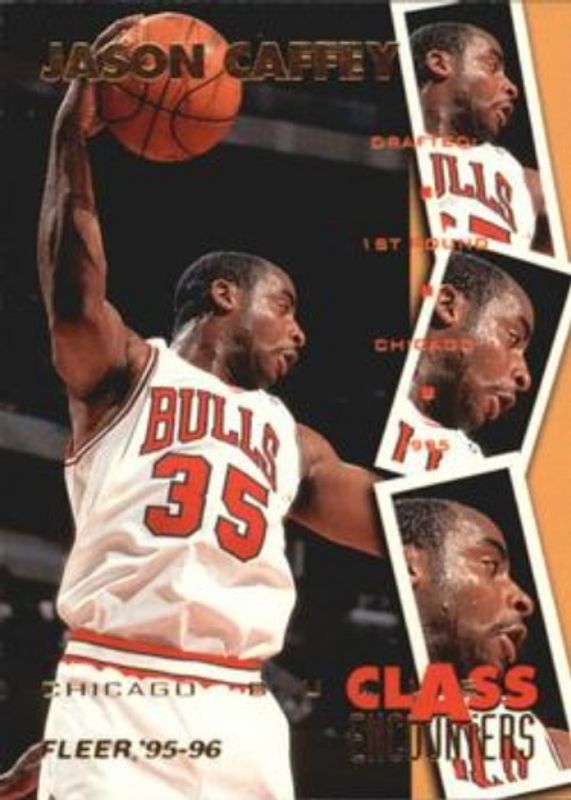 The Jason Caffey 1995 Fleer #22 Class Encounters Rookie card is 1 of 2 Jason Caffey's card variations in the 1995 Fleer set being tracked by Sports Card Investor, including Base.