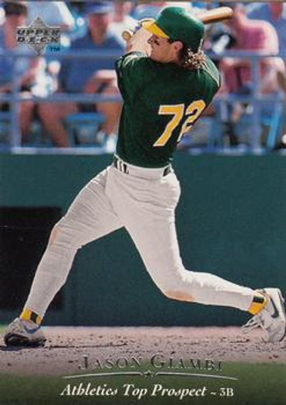 The Jason Giambi 1995 Upper Deck Minor League #9 Base card is 1 of 3 Jason Giambi's card variations in the 1995 Upper Deck Minor League set being tracked by Sports Card Investor, including Future Stock, and Autographs.