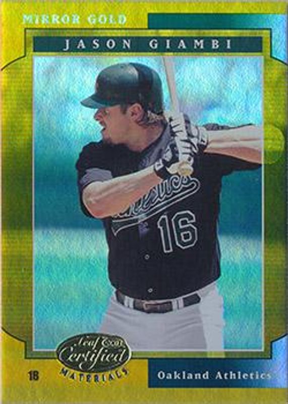 Jason Giambi 2001 Leaf Certified Materials #35 Mirror Gold /25 RAW Price Guide