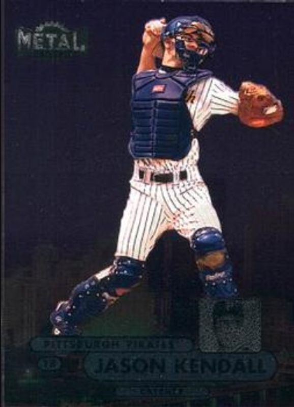 The Jason Kendall 1998 Metal Universe #18 Base card is 1 of 2 Jason Kendall's card variations in the 1998 Metal Universe set being tracked by Sports Card Investor, including Precious Metal Gems /50.